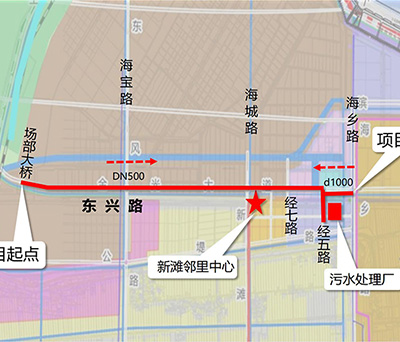 蘇港公司污水收集處理能力提升工程-東興路段一期(經(jīng)七路-海鄉(xiāng)路)位于東興路北側(cè),西起經(jīng)七路,東至海鄉(xiāng)路,全長約2.5公里,